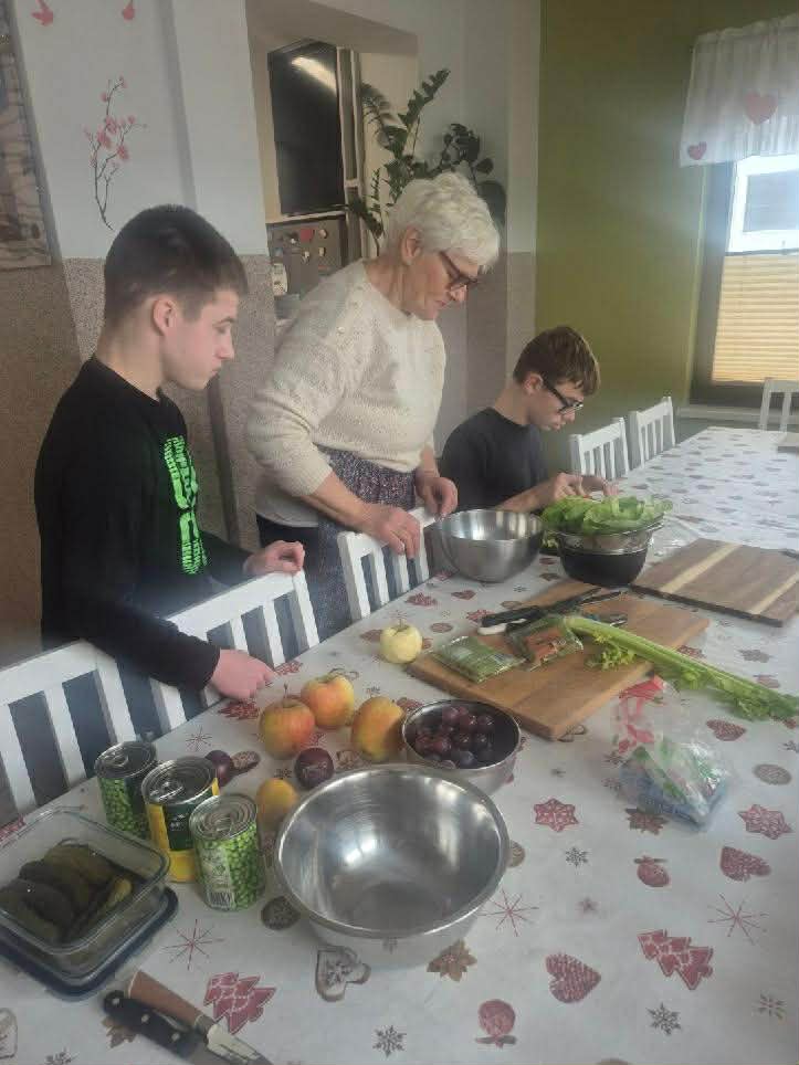 Drugi tydzień rozpoczął się od od miłej niespodzianki w postaci wizyty zaprzyjaźnionej z naszą placówką Pani Jagody z Brodnicy. Przyjechała ona poprowadzić warsztaty kulinarne dla wychowanków. Każde jej odwiedziny są prawdziwą ucztą, gdyż nie tylko wspólnie z dziećmi gotuje, ale też przywozi domowe, samodzielnie robione z ekologicznych upraw przetwory. Wspólnie spędzone godziny bardzo ucieszyły wychowanków, którzy ochoczo włączyli się do pomocy w przygotowaniach. Zajęcia te poszerzyły ich wiedzę z zakresu różnorodności warzyw i ich zdrowych właściwości.