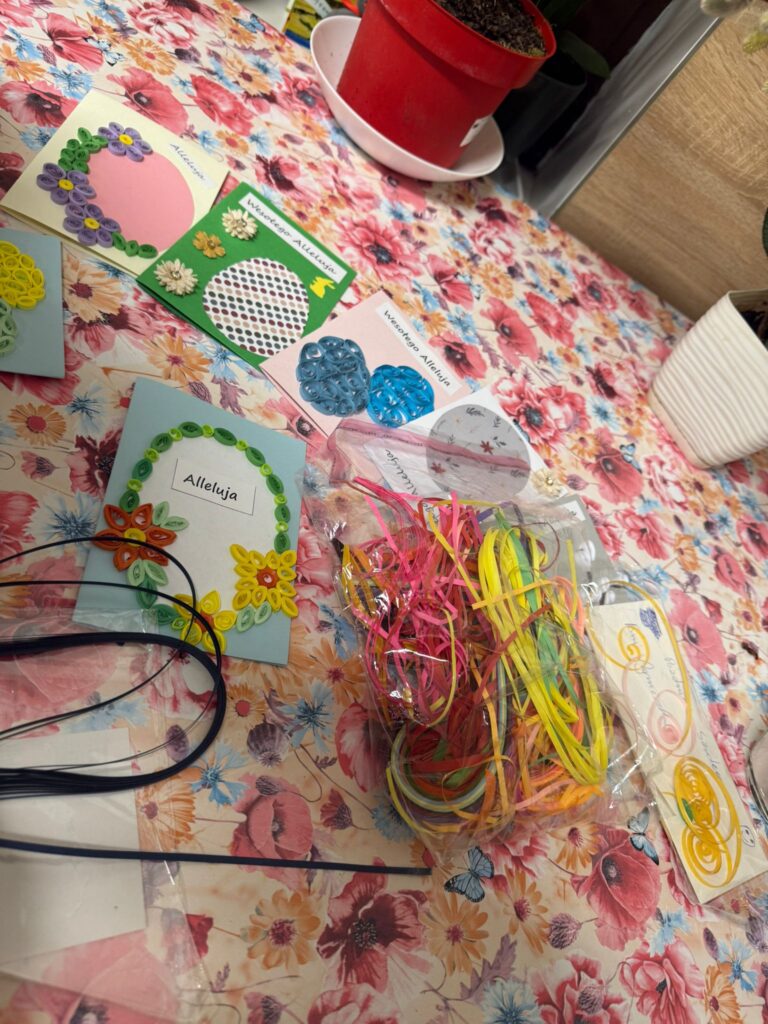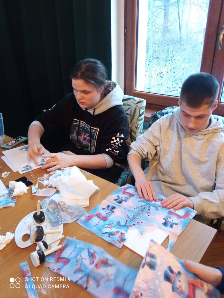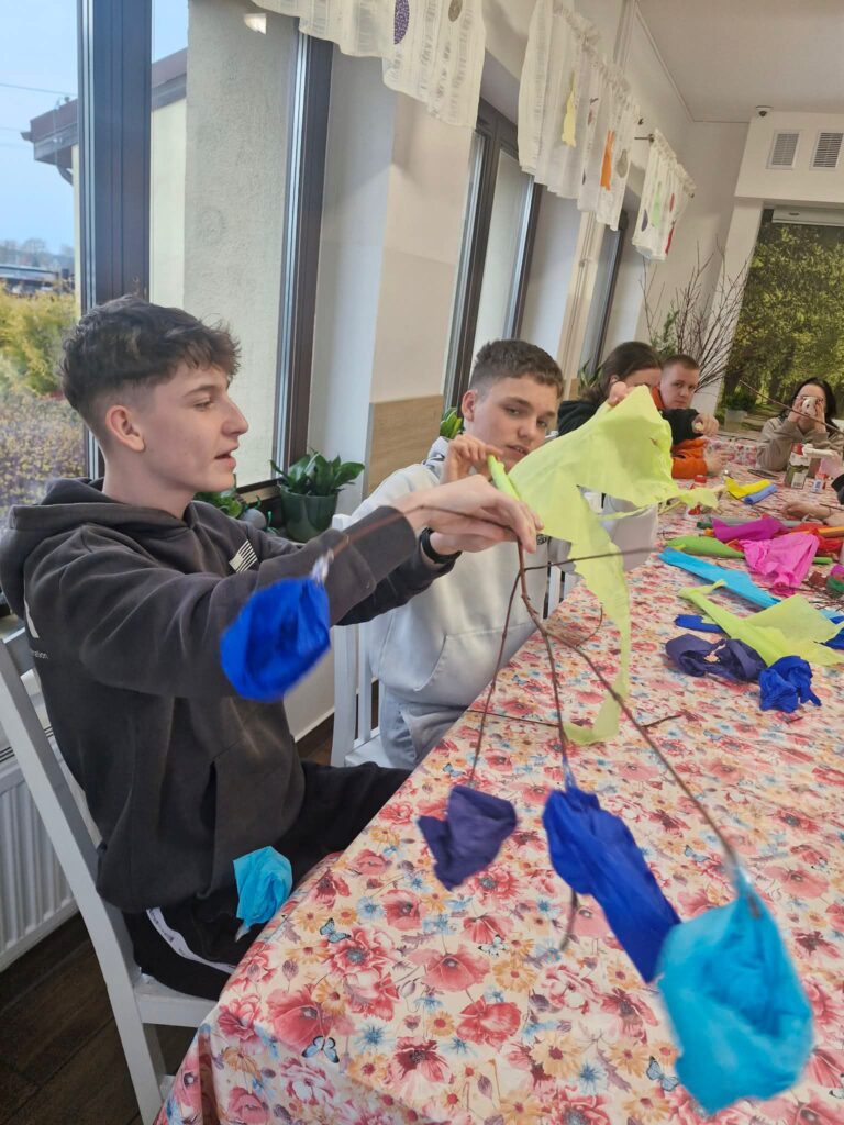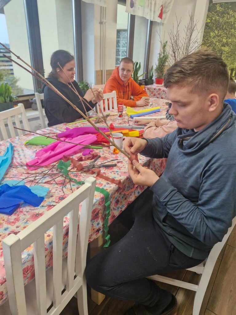 W okresie przedświątecznym w naszej placówce panowała wyjątkowo radosna i świąteczna atmosfera. Wychowankowie podczas warsztatów artystycznych z wychowawcami przygotowywali własnoręcznie, metodą quillingu, świąteczne kartki oraz palmę wielkanocną.
