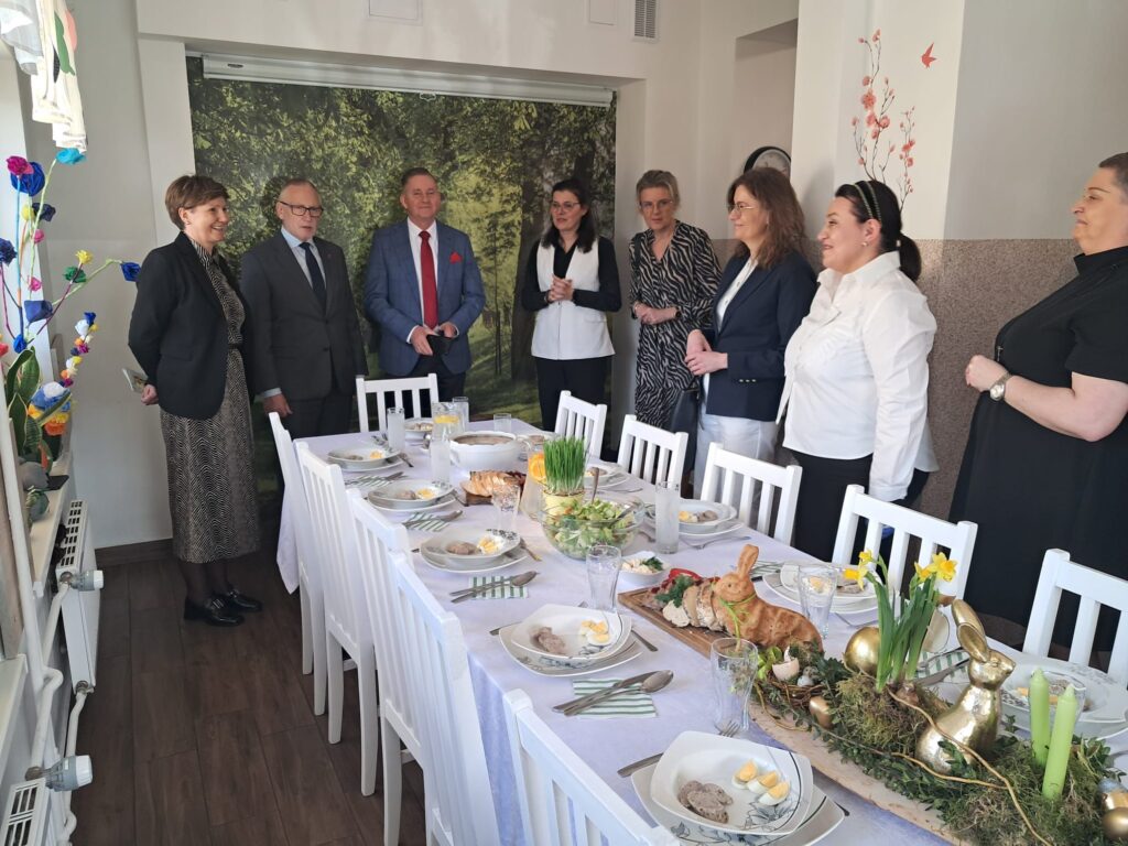 Z okazji zbliżających się Świąt Wielkanocnych naszą placówkę odwiedzili: Starosta Wąbrzeski Pan Krzysztof Maćkiewicz wraz z Wicestarostą Panią Gizelą Pijar, członkiem zarządu Panem Wiesławem Sicińskim, Sekretarzem Powiatu Panią Anną Wetzel oraz Dyrektorem Powiatowego Centrum Pomocy Rodzinie Panią Justyną Przybyłowską.