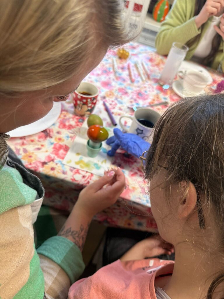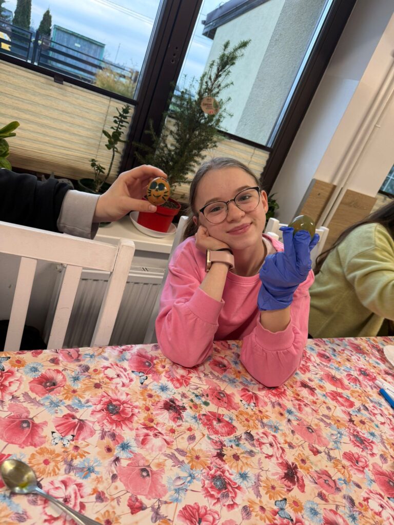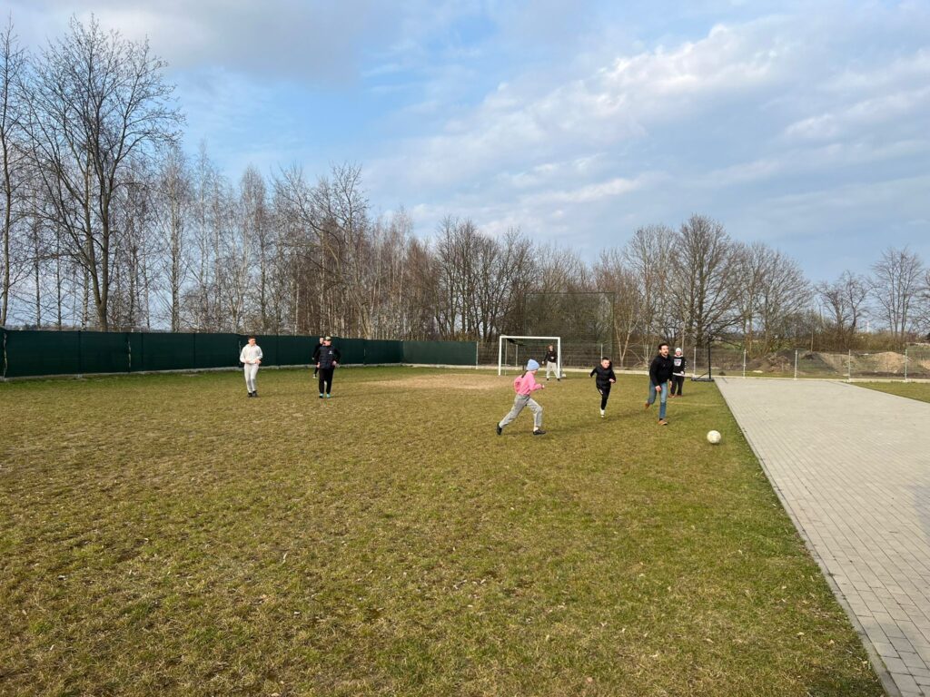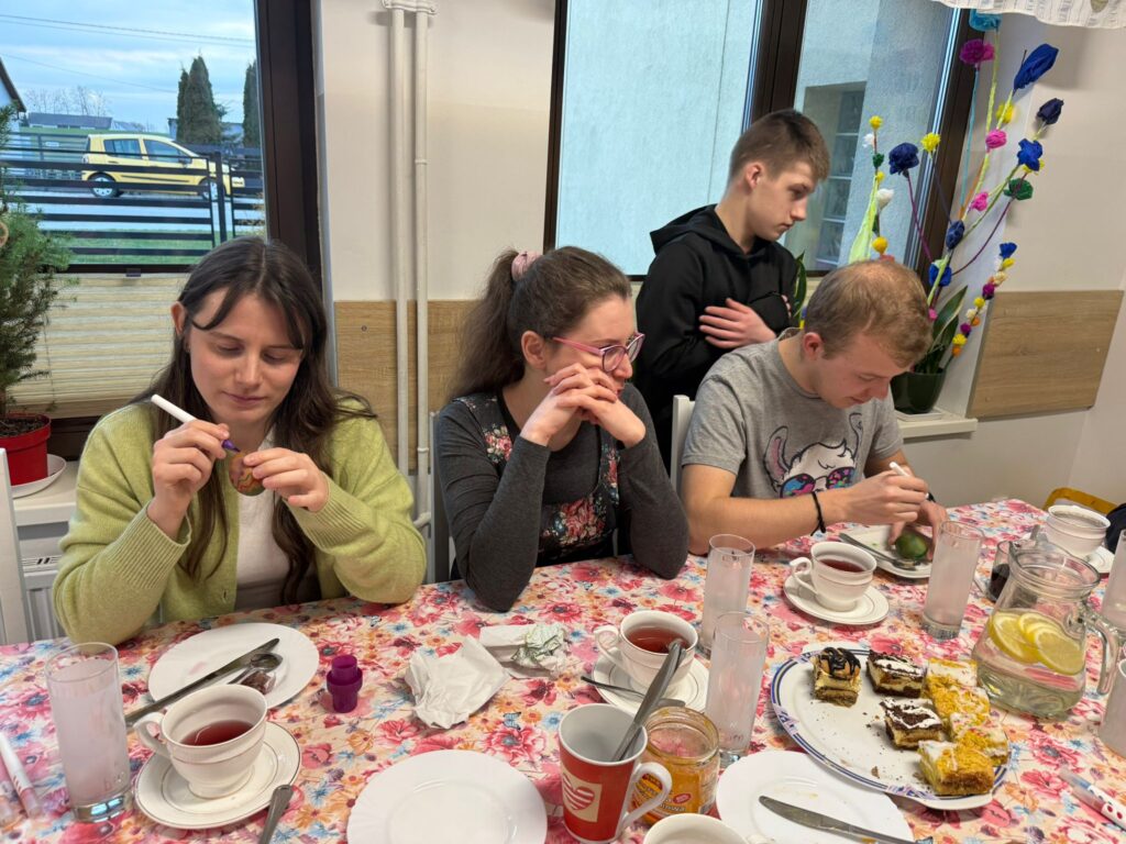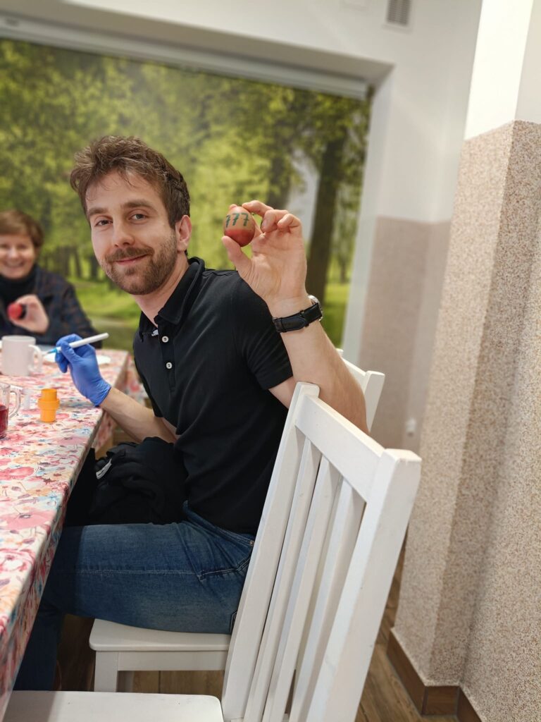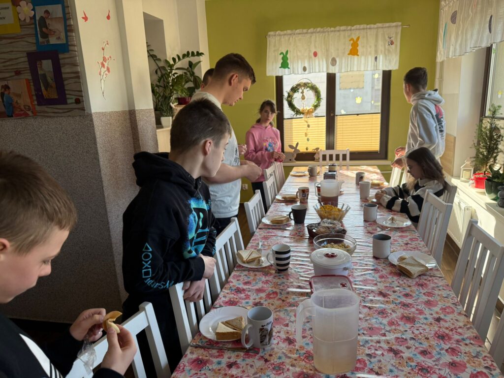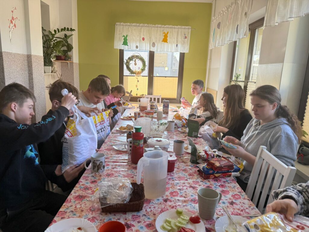 W niedzielę przedświąteczną odwiedzili placówkę Pan Kacper z przyjaciółmi. Podczas spotkania z dzieci wraz z gośćmi malowały jajka. Nie zabrakło śmiechu oraz dumy z własnoręcznie wykonanych pisanek. Znalazł się też czas na aktywności sportowe – grę w piłkę na świeżym powietrzu. Każde dziecko otrzymało słodki upominek, a w ramach podziękowań przekazaliśmy na ręce Pana Kacpra piękną samodzielnie wykonaną kartkę wielkanocną z życzeniami.