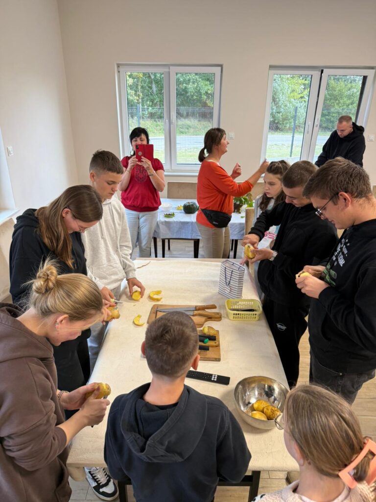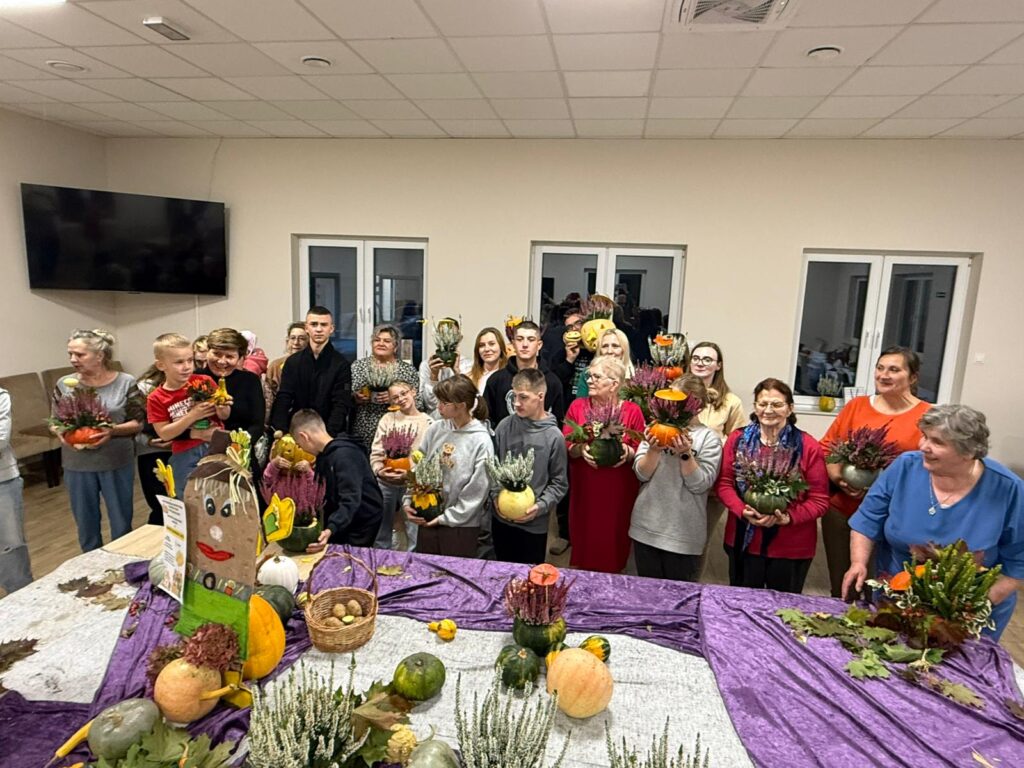 W Świetlicy Wiejskiej w Łopatkach Polskich odbyły się różnego rodzaju konkursy „ziemniaczane”, na przykład skrobanie ziemniaka na czas. Nasi wychowankowie mieli okazję zmierzyć się i sprawdzić swoją wiedzę w konkursie na temat ziemniaka. Wzięliśmy również udział w warsztatach przygotowania stroików ozdobnych oraz pięknych jesiennych kompozycji do naszego domu, z główną bohaterką – dynią. Była to możliwość spędzenie czasu w kreatywny sposób, miłej atmosferze oraz świetna integracja z zabawą.